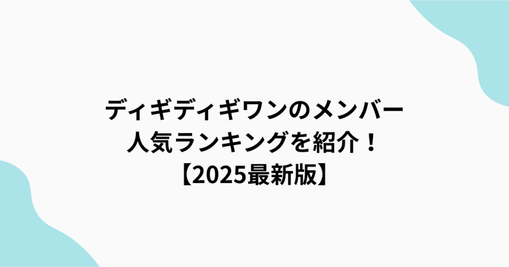 ディギディギワンのメンバー人気ランキングを紹介!【2025最新版】