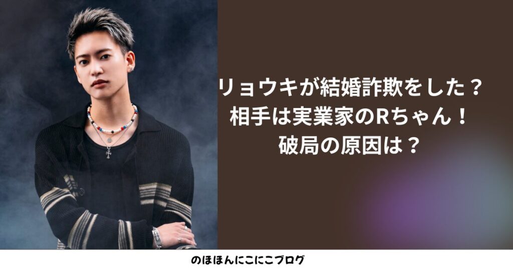 リョウキが結婚詐欺をした?相手は実業家のRちゃん!破局の原因は?